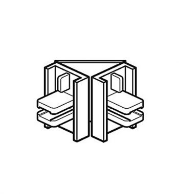 These combi-caps cap the rail extremities. One combi-cap serves as either one corner cap or splits in two to serve as two separate end caps.